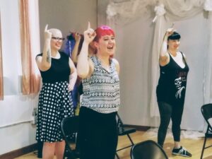 It’s safe to say — we had a fabulous time. A variety of workshops and classes are offered, from Burlesquercise, “The Art of the Tease,” Vintage Hair Styling Workshop, and Pinup Makeup Workshop. We decided to give Chair Dancing a try.