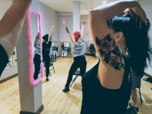 Jamie starts the class with a warmup, and peppers in pep talks and words of wisdom throughout the class. We learned how to move with grace, style, and intention, and how to grab the attention of the audience. We also learned pretty quickly that chair dancing can be a pretty intense core workout if you want it to be. It was an astoundingly positive experience for everyone involved. Qween City’s Afura Fareed said, “Everything about Jamie exudes ‘Goddess on Earth!’ I love the way she uses her classroom as a platform to share her poetic wisdom about feminine empowerment and magic!” This sentiment that was echoed wholeheartedly by Shannon Dawn.